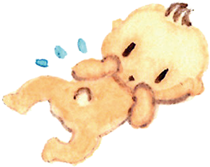 - 生後1ヵ月〜半年に起こる、ビタミンK不足が原因の突然出血。数千人にひとりのめずらしい病気です。当院では予防のため入院中の赤ちゃんにビタミンK入りシロップ剤を飲ませています。生後3ヵ月までは投与をおすすめしています。