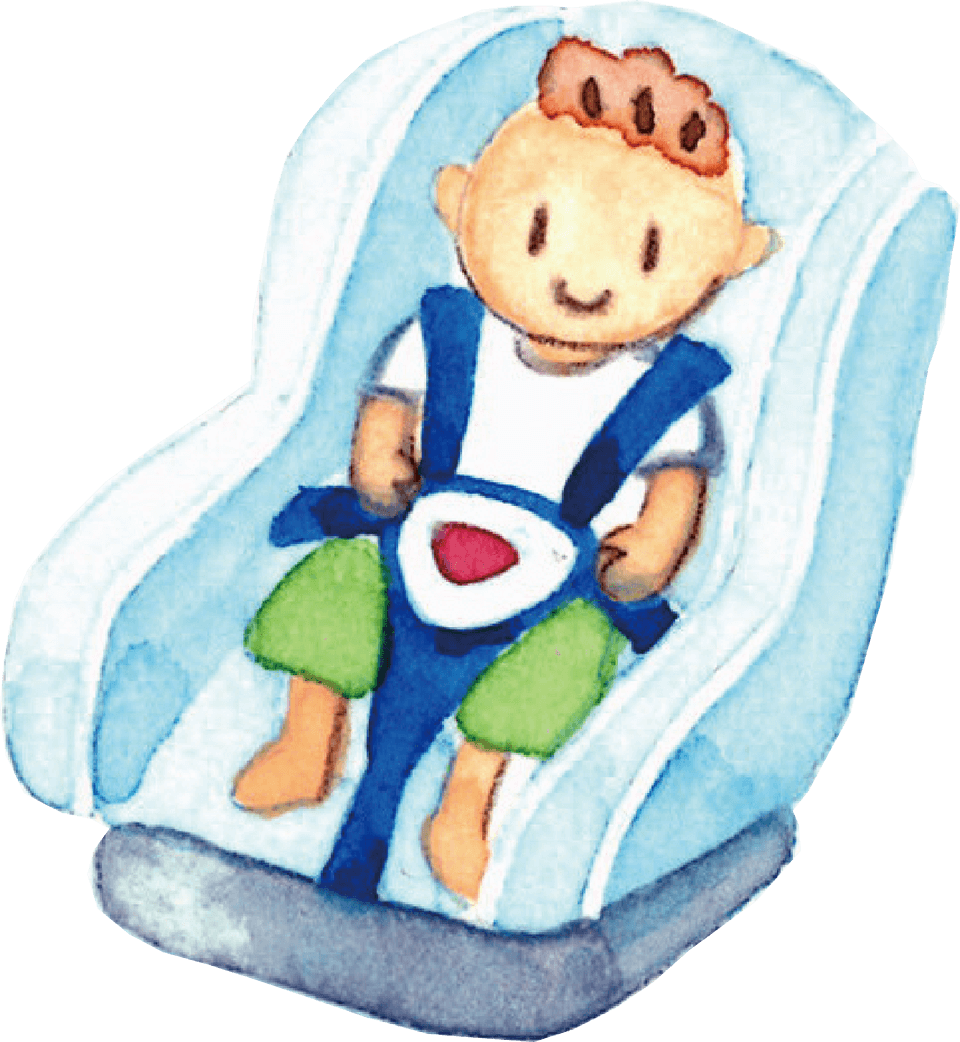 - 走行中時速50kmで衝突した場合、体重の30倍の力が前方にかかり飛び出してしまいます。車に乗せるときは、たとえ近い距離でも、チャイルドシートの使用を厳守しましょう。
