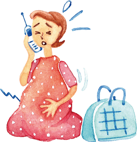 陣痛が来てもあわてないで、痛みの間隔を計ってください。そして、次のような症状がありましたらまずお電話でご連絡を。入院についてご指示させていただきます。
