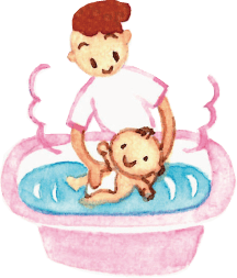 スタッフが沐浴します。おふろは明日から毎日入れてください。