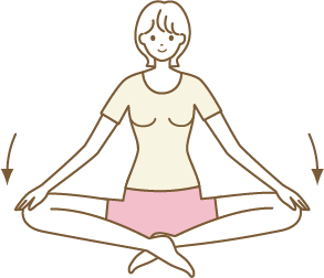 あぐらを組んですわり、両ひざを両手で静かに外側に押し倒していく。