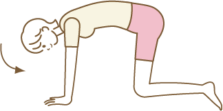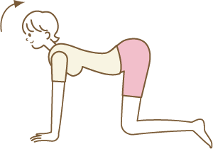よつんばいになり、頭を下げて背中を丸くする。次に、頭を上げて、上体をそらしながら重心を前にうつす。ひと呼吸してゆっくりともとの姿勢にもどる。
