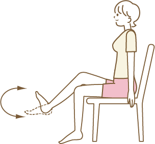 いすにこしかけて足を組む。上側の足先を上下にそらせたり、回したりする。